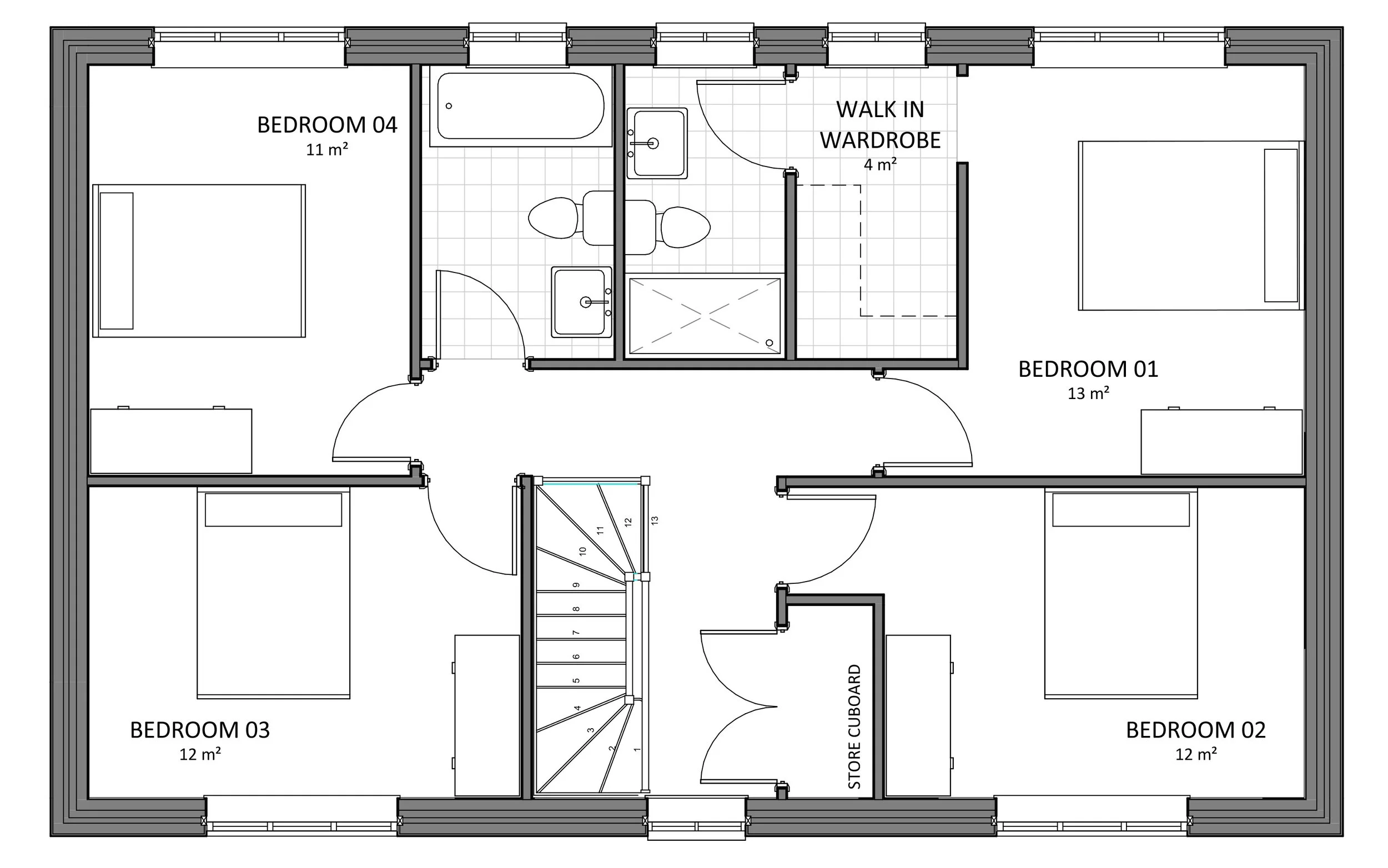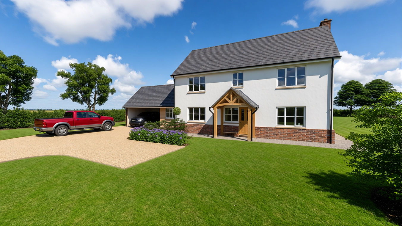 The design has been developed with a focus on simplicity and build efficiency, using a straightforward rectangular form, pitched roof structure and conventional construction materials. The dwelling provides approximately 180 m² of internal floor area, with around 100 m² at ground floor level and 80 m² at first floor level. This compact farmhouse layout helps maintain an efficient build while delivering the accommodation required by the clients. The proposed materials, including brick plinth, render walls and slate roof, reflect local building character while remaining practical for construction.
